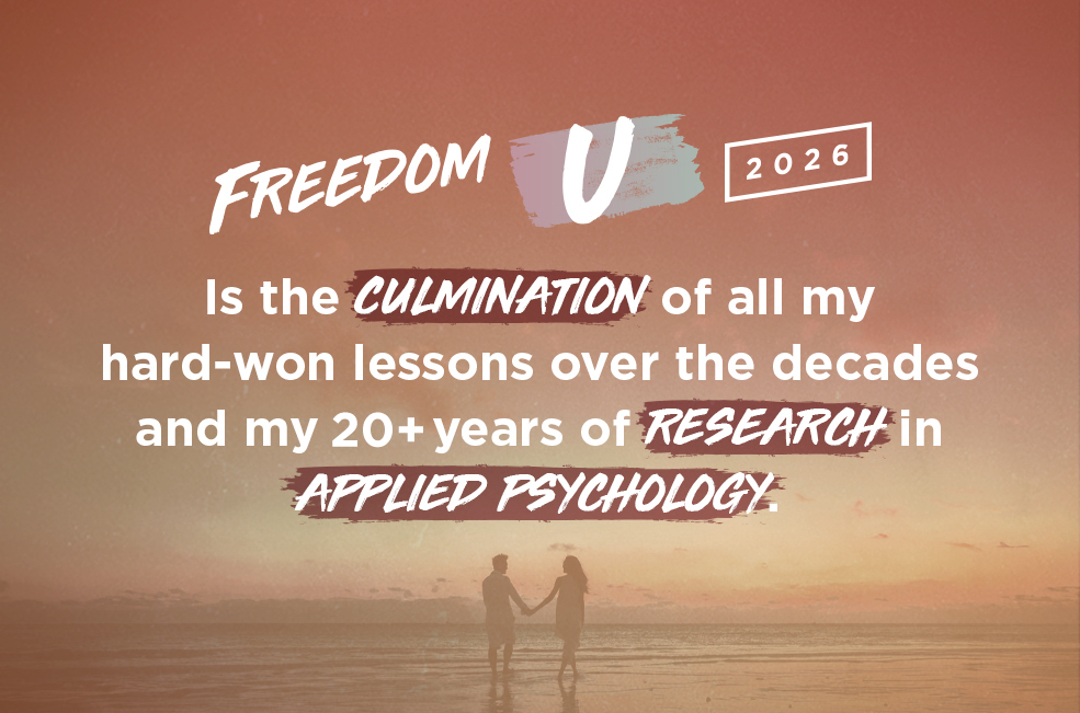 Freedom U works at the level where true change actually happens. Based on research in fields like psychology and neuroscience… and backed up by concrete results my students have experienced over the decades… this is an experiential and not just theoretical course that will transform you on the inside to give you the life you want on the outside.