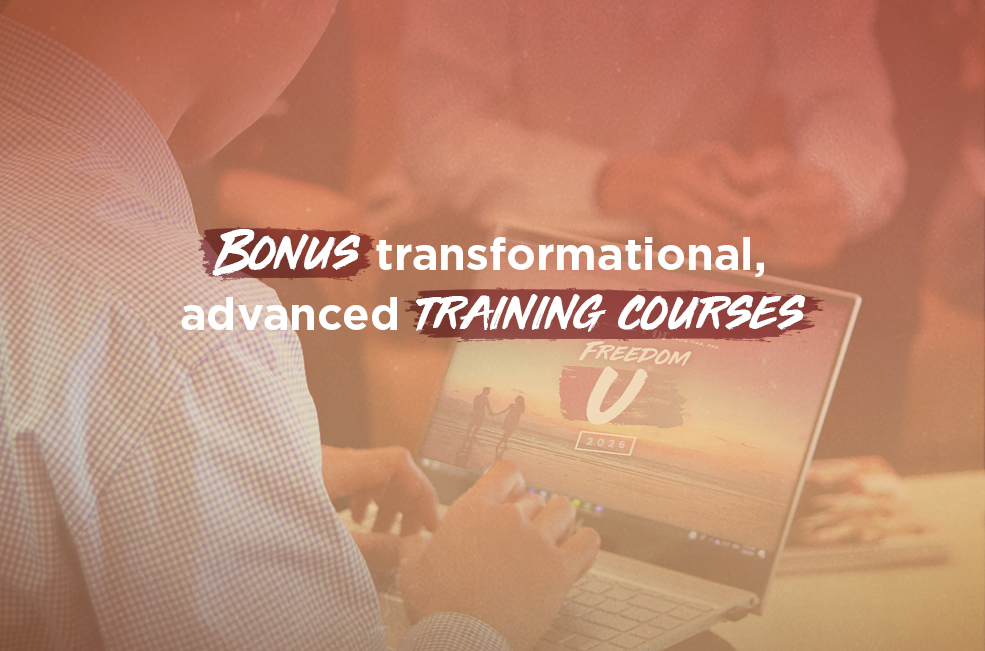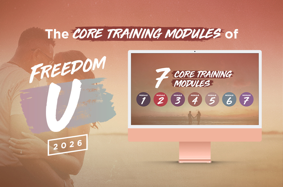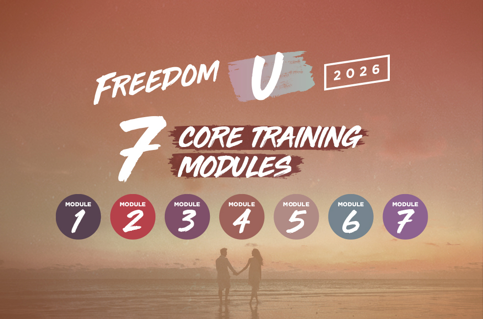 Freedom U is composed of 7 core training Modules. All course materials, including live streams, online videos, audio MP3s, PDF slides, Action Sheets (aka., growth assignments), and additional resources are inside our online members portal.